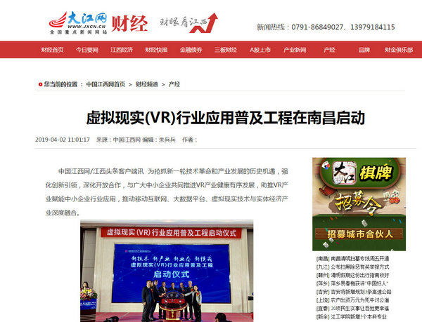虚拟现实(VR)行业应用普及工程在南昌启动