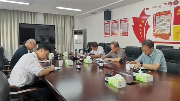 会长饶剑明、特聘专家何建辉、徐建文、特聘调研员颜斌、副秘书长黄余良等讨论专题调研工作